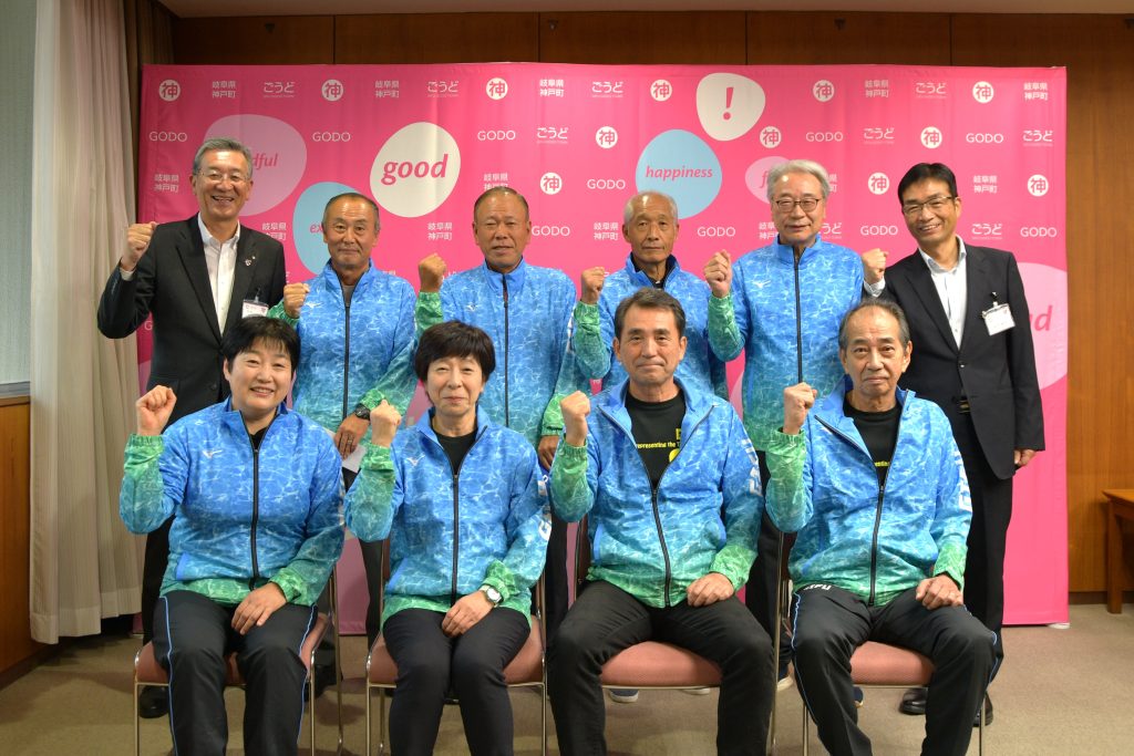 9月25日(木)、10月18日(土)から岐阜県内で開催される、「第37回全国健康福祉祭ぎふ大会(ねんりんピック岐阜2025)」に出場される、上甫木敏弘さん(ソフトボール)、サッカー競技に久野三慶さん(サッカー)、藤本聡さん(ソフトテニス)、林直史さん、大野隆司さん、岡田里美さん、林佳会さん(ともにインディアカ)、桑原誠さん(健康マージャン)、計8名の方を激励いたしました。