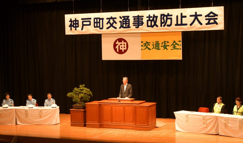 9月25日(木)、神戸町中央公民館大ホールにおいて、秋の全国交通安全運動に合わせて「神戸町交通事故防止大会」が開催されました。