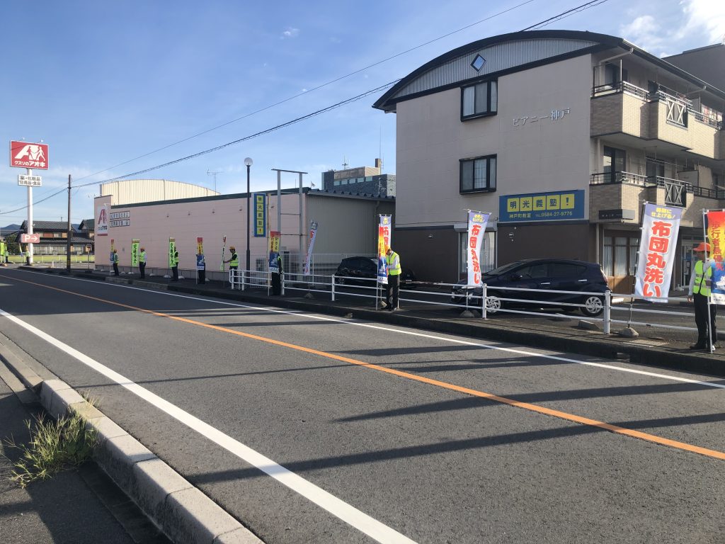 9月22日(月)、21日(日)から始まった「秋の全国交通安全運動」に併せ、神戸交番前において、神戸町交通安全協会神戸支部や大垣警察署の皆さん、役場幹部職員とともに「街頭啓発活動」を行いました。