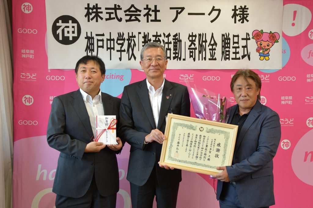 9月30日(火)、神戸町内で印刷事業を営まれている㈱アーク様より、神戸中学校に対して、100万円のご寄付金をいただきました。