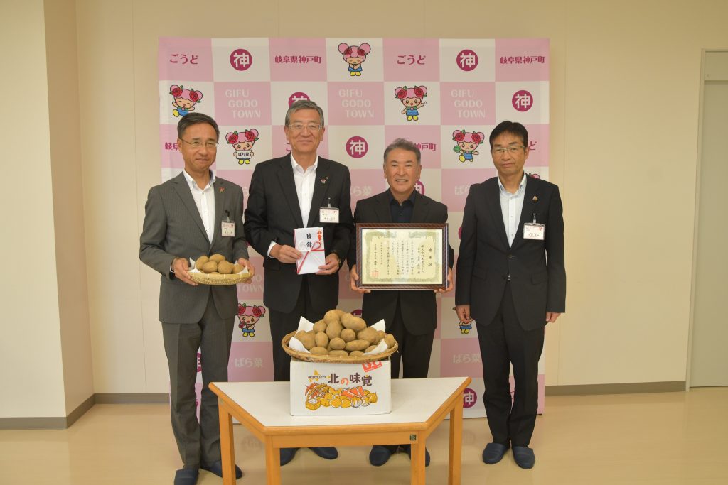 北海道芽室町で農業を営む、「土屋ファーム」様から、今年も昨年に引き続き、じゃがいも(品種:北海こがね)100kgをご寄贈いただきました。土屋ファームの土屋直道会長は、明治時代に神戸町丈六道から北海道に開拓に入られた土屋弥八さんのお孫さんにあたり、先祖ゆかりの地である神戸町に「貢献したい」との思いから、経営される農場で生産されたじゃがいもを、神戸の子どもたちの給食にと、ご提供いただきました。