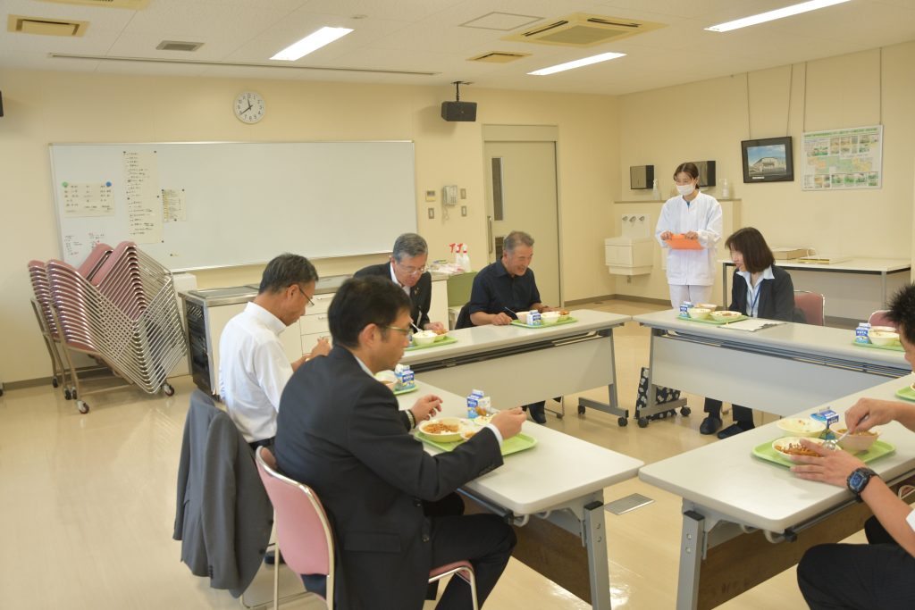 この日、給食センターでの贈呈式を終えた後、土屋さんのじゃがいもを使って調理された給食として、カレーを土屋さんと一緒にいただきました。「北海こがね」という品種のじゃがいもは、ホクホクした食感で、カレーの深いコクと旨みが加わり、とてもおいしくいただきました。