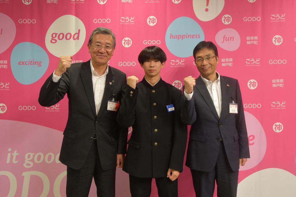 第39回全国都道府県対抗中学バレーボール大会」に出場される、バレーボールチームGODO.V.B.Cに所属する神戸中学校3年の若原晴翔さんを激励しました。