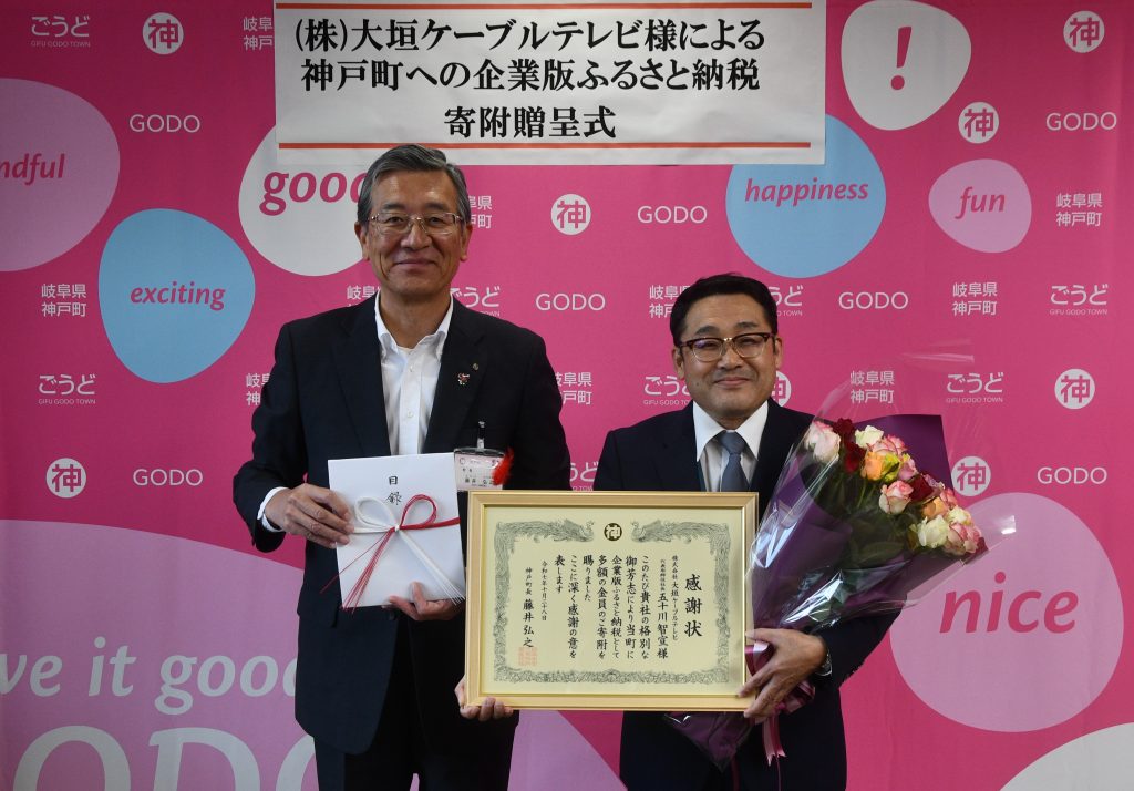 大垣ケーブルテレビ様から、今回で4連続となる、企業版ふるさと納税制度を利用したご寄附をいただきました。