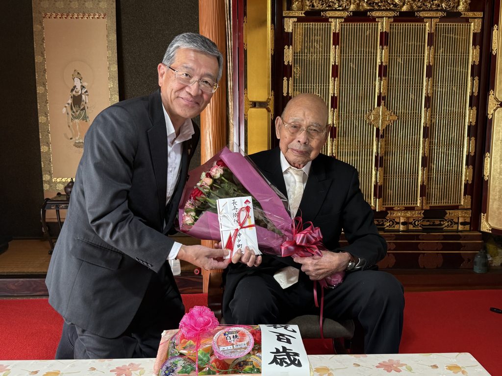 100歳の誕生日を迎えられた、落合区在住の伊藤眞一さんのご長寿をお祝いするためご自宅を訪問させていただきました。