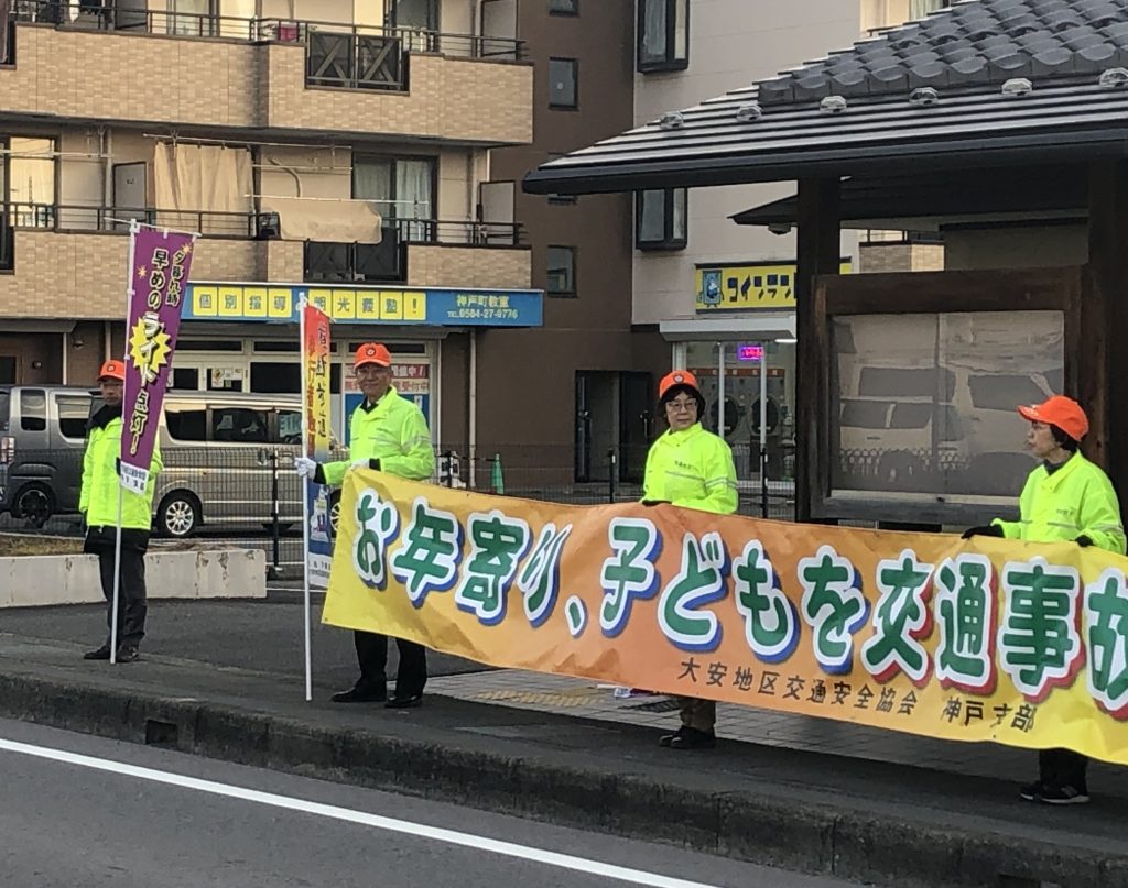 本日から始まった「年末の交通安全県民運動」の啓発のため、神戸町交通安全協会神戸支部や大垣警察署、役場幹部職員と一緒に街頭啓発に参加しました。皆さん、寒い中、大変お疲れ様でした。